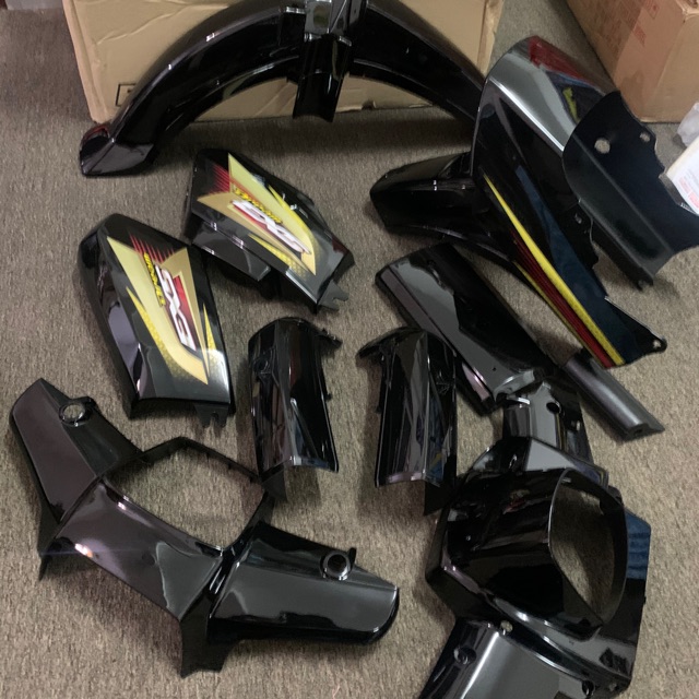 Honda ex5 / ex5 dream body cover set cover set coverset bodyset complete set stripe strike stiker hitam black purple set. Ex5 honda coverset warna hitam high power dream 1 kualiti buatan malaysia.